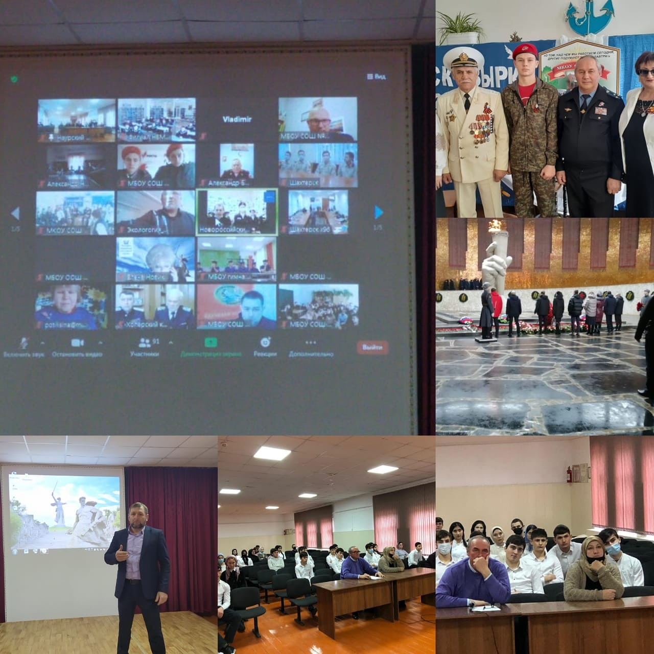 Заместитель директора Идрисов Р.Р. и руководитель ОБЖ Абдурзаков Р. А. рассказали участникам конференции о бесмертных подвигах воинов Красной Армии из Чеченской Республики. В большей части о молодом пулемëтчике Хампаши Нурадилова, отдавший свою жизнь в боях под Сталинградом, уничтоживший более 900 фашистских захватчиков .