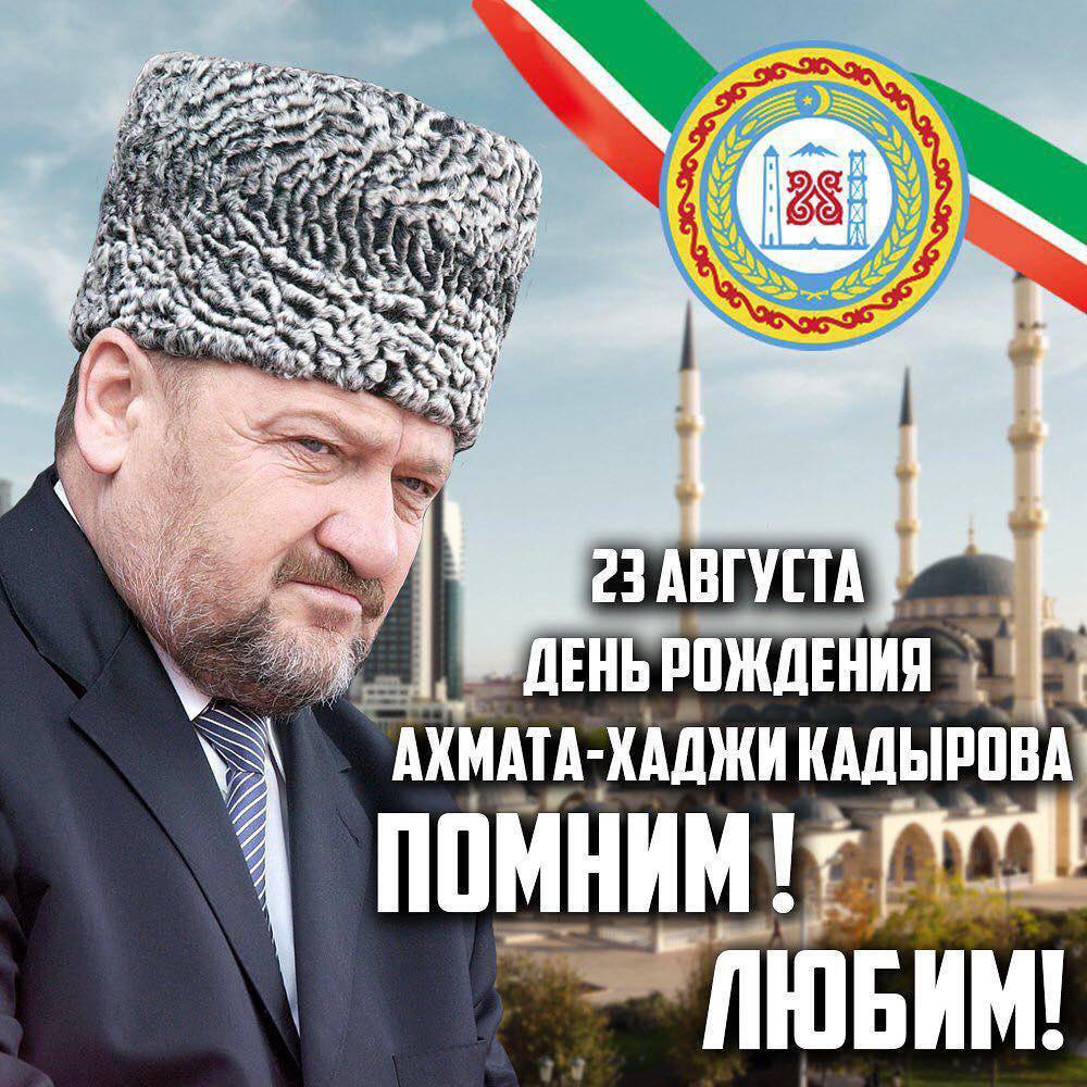 23.08.2025Сегодня, 23 августа 2025 года, выдающемуся сыну Чеченского народа, известному государственному, политическому и религиозному деятелю, ПЕРВОМУ ПРЕЗИДЕНТУ ЧЕЧЕНСКОЙ РЕСПУБЛИКИ, ГЕРОЮ РОССИИ АХМАТ-ХАДЖИ КАДЫРОВУ (ДАЛА ГIАЗОТ КЪОБАЛДОЙЛА ЦУЬНАН!) исполнилось бы 74 года. Мы со скорбью вспоминаем этого великого человека, достойного сына чеченского народа, чья воля, непоколебимость и любовь к своей Отчизне помогли спасти от страшных войн наш народ.